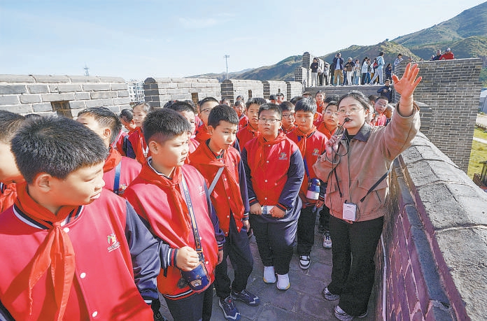 學(xué)生們?cè)陂L(zhǎng)城上開展研學(xué)。